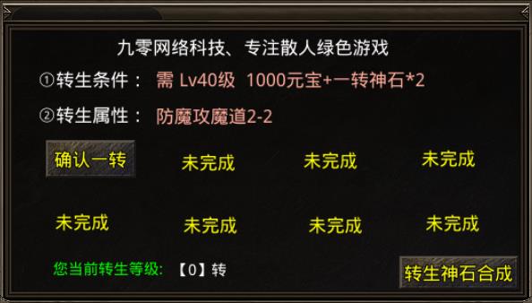每次转生都增加防魔攻道属性,转生等级越高属性增加越多。