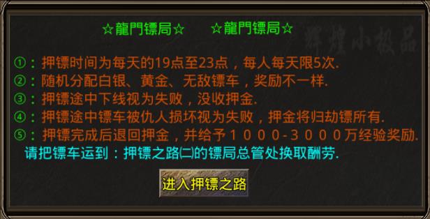③:押镖途中下线视为失败,没收押金。